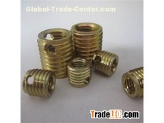 Self Tapping Inserts (also known as self threaded inserts or Ensats) are cylindrical metal bushings with internal and external threads and are specially designed to cut their own threads as they are being driven into a drilled hole. They provide permanent wear-resistant threads in a wide range of materials,Website:http://www.delicoil.com, from tough to tap, high strength steels to brittle plastics. The thread cutting action is performed by the cutting slots on the insert. By tapping its own thread, the self tapping insert eliminates the need for pre-tapped holes. Features